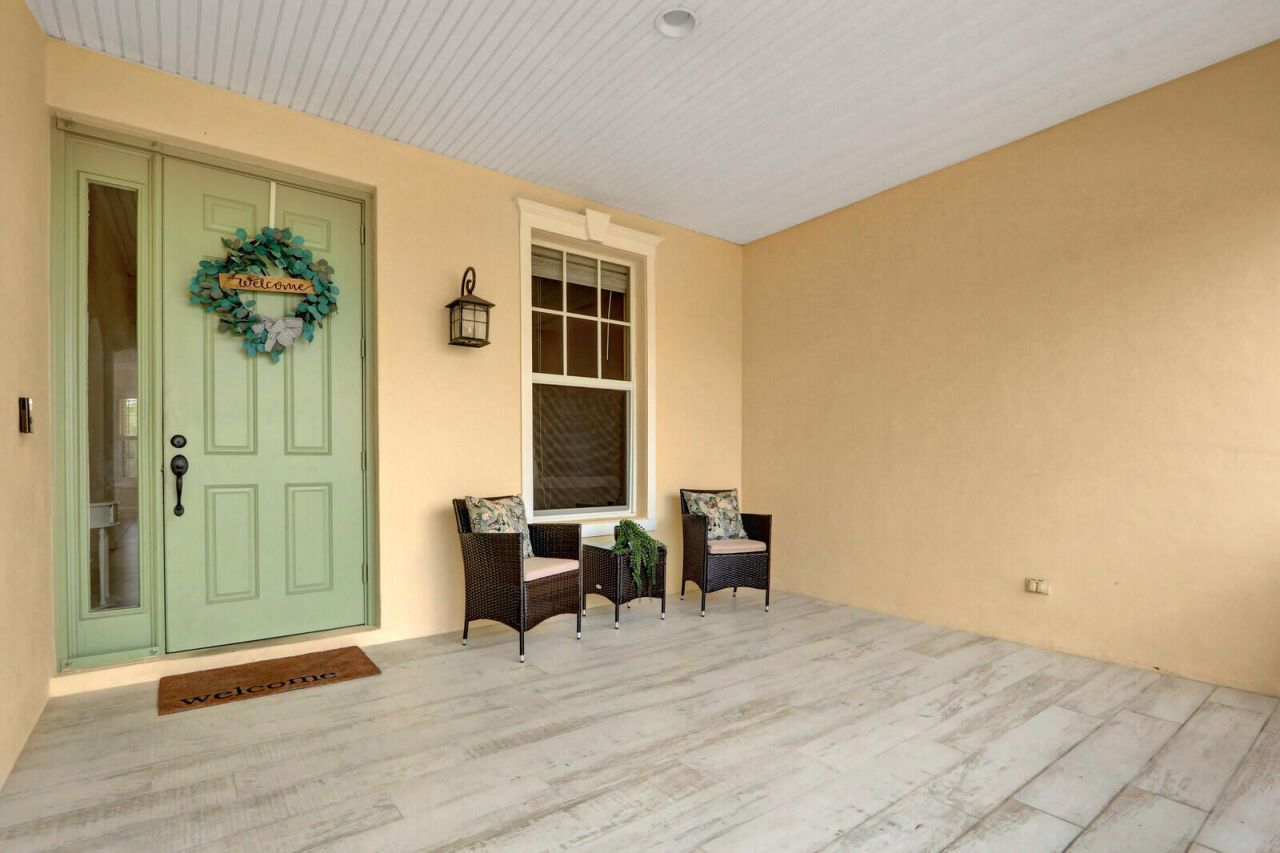 Experience beautiful sunrises and spectacular sunsets from this stunning waterfront 3-bedroom, 2-bath residence located in the highly sought-after Bedford Park at Tradition. A grand front porch welcomes you with the perfect setting for morning coffee, while the screened-in lanai provides a serene retreat for relaxing evenings overlooking the water. The beautifully appointed kitchen is designed for both everyday living and elegant entertaining, featuring granite countertops, stainless steel appli...Experience beautiful sunrises and spectacular sunsets from this stunning waterfront 3-bedroom, 2-bath residence located in the highly sought-after Bedford Park at Tradition. A grand front porch welcomes you with the perfect setting for morning coffee, while the screened-in lanai provides a serene retreat for relaxing evenings overlooking the water. The beautifully appointed kitchen is designed for both everyday living and elegant entertaining, featuring granite countertops, stainless steel appliances, a generous storage pantry, and a butler's pantry. An inviting breakfast area and ample counter seating create seamless gathering spaces. The expansive Florida/TV room offers additional comfort and versatility. The home includes three spacious bedrooms plus a private au pair suite/ office. with French doors for added privacy. Refined details such as crown molding throughout, tile and plush carpet flooring, and an expansive backyard with tranquil lake views enhance the home's timeless appeal. Ideally located just moments from Tradition Town Center, Cleveland Clinic, fine dining, and premier shopping.
