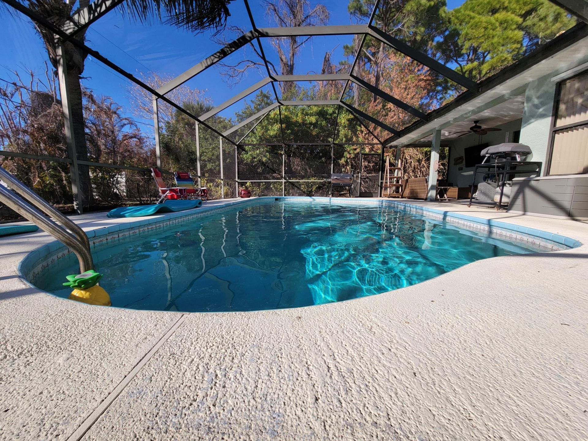 This 3/2/2 POOL home with a large 2 car garage is located on a cul-de-sac and is ready to be your new home. There is a living room, dining area, and a family room with a fireplace that overlooks the pool. The kitchen has granite & stainless steel appliances with barstool seating. The primary bedroom has a private bathroom. 2nd bathroom has a dual vanity with granite counter tops. There is tile throughout main livings areas and carpet in bedrooms. Home has been upgraded over the last several year...This 3/2/2 POOL home with a large 2 car garage is located on a cul-de-sac and is ready to be your new home. There is a living room, dining area, and a family room with a fireplace that overlooks the pool. The kitchen has granite & stainless steel appliances with barstool seating. The primary bedroom has a private bathroom. 2nd bathroom has a dual vanity with granite counter tops. There is tile throughout main livings areas and carpet in bedrooms. Home has been upgraded over the last several years including; air conditioning, hot water heater, and pool pump. Pool is @ 9' at the deep end, very rare. Yard is fenced and has a shed in the backyard. The adjacent lot is also available for purchase. While all information is deemed reliable, it can be subject to errors, omissions, change and withdrawal.