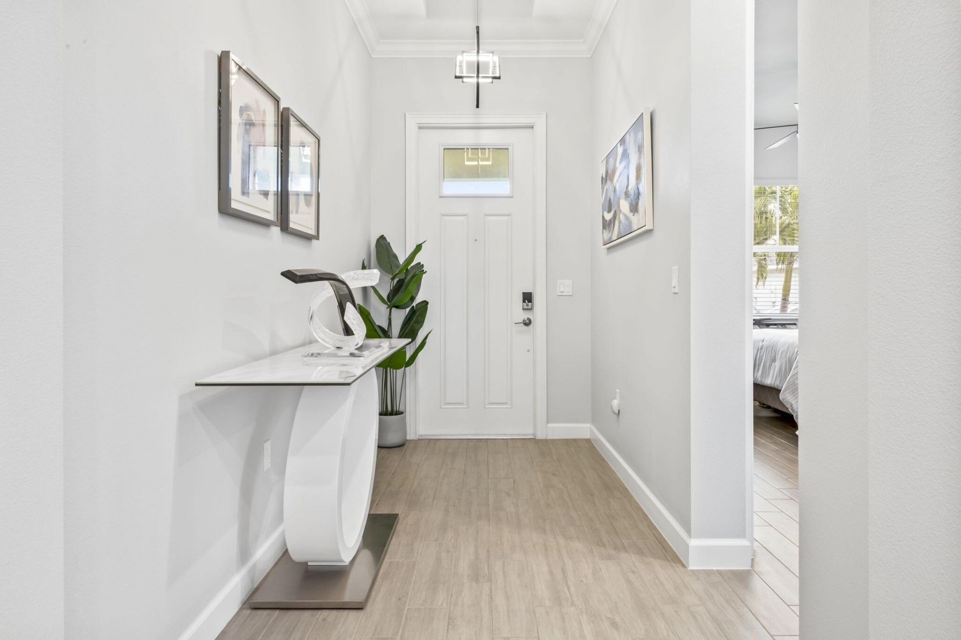 Why wait to build? Enjoy resort-style living in this 2023 home-3 bedroom, 3-bath home showcasing a rare open-concept, split floor plan with spacious bedrooms, ample storage, and custom cabinetry. Recently all three bathrooms have been beautifully upgraded with frameless doors/new hardware and both patio/driveway pavers resealed.Entertain in the gourmet kitchen featuring quartz countertops, custom cabinets with crown molding, gas stovetop, stainless steel appliances, and a built-in coffee bar. Im...Why wait to build? Enjoy resort-style living in this 2023 home-3 bedroom, 3-bath home showcasing a rare open-concept, split floor plan with spacious bedrooms, ample storage, and custom cabinetry. Recently all three bathrooms have been beautifully upgraded with frameless doors/new hardware and both patio/driveway pavers resealed.Entertain in the gourmet kitchen featuring quartz countertops, custom cabinets with crown molding, gas stovetop, stainless steel appliances, and a built-in coffee bar. Impact windows, a tankless water heater, and sleek 6''x24'' tile elevate the home's modern elegance.Step outside to a fully fenced backyard overlooking a peaceful lake-perfect for relaxing or hosting guests. Enjoy world-class amenities, a gorgeous clubhouse, and a vibrant social community.